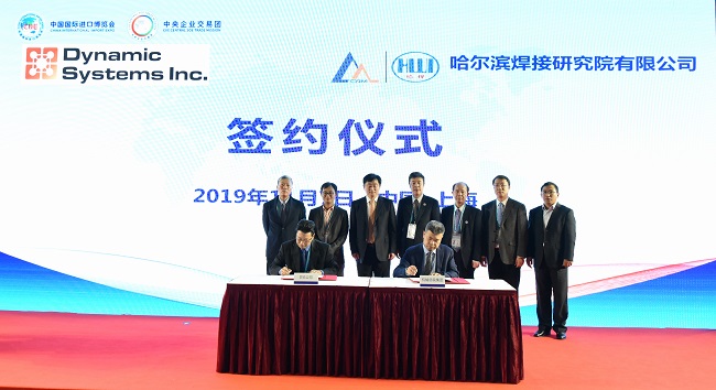 DSI亞太區(qū)總裁陳偉昌代表美國(guó)DSI公司和哈焊院副總經(jīng)理徐鍇簽署了采購(gòu)意向協(xié)議。